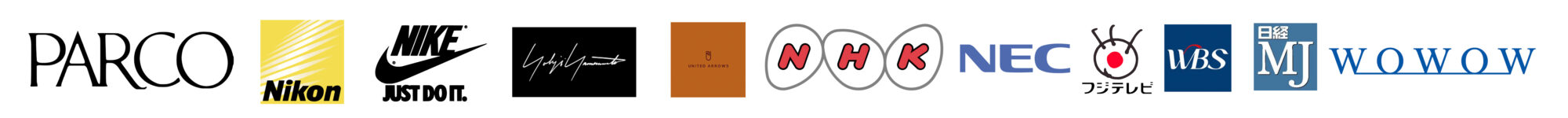 (PARCO, EDWIN, NIKE, Yohji Yamamoto, UNITD ARROWS, WOWOW など)